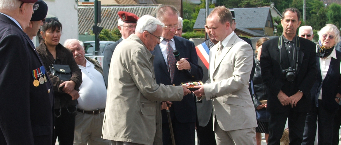 A month before he died, Bernard discussed with his grandson Anthony the possibility of donating his medals to the museum in Ver sur Mer. Bernard’s cap badge and penknife along with a photograph in uniform were already at the museum. Anthony promised Bernard that he would one day do this for him. And so on 6 th June 2008 Bernard’s request became a reality when several members of his family, along with friends travelled to Ver Sur Mer to hand over his medals to the museum.